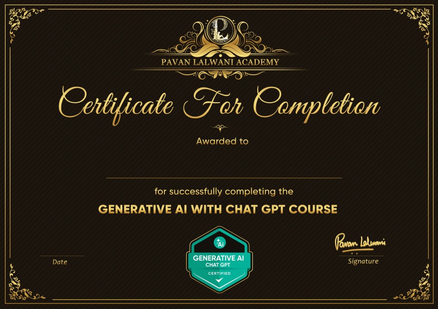 Best Course that teaches you how to effectively use Generative AI tools like ChatGPT and save you hours of repetitive work. This course will teach you the best ways to get you hyper productive and make your work faster and efficient.