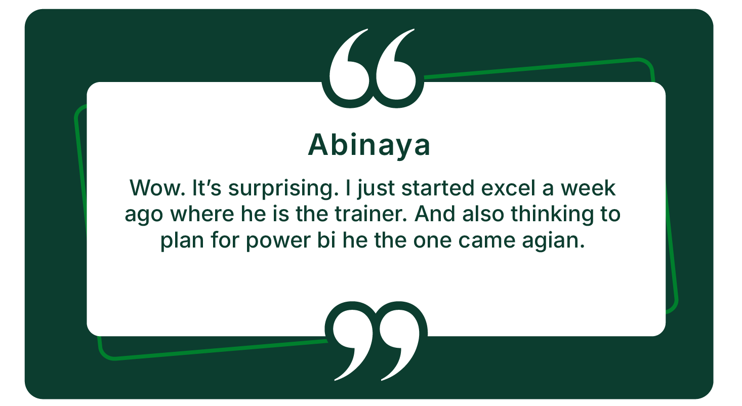 Pavan’s expertise goes beyond Power BI—he’s skilled in Tableau, Excel, Alteryx, AI, and Automation tools like ChatGPT and Microsoft Copilot. His ability to break down complex topics into simple, digestible lessons has made him one of India’s most renowned Power BI trainers. He is a trainer who knows trends, understands what industry demands and teaches only why you need to excel in this competitive market of evolving technology and industry.