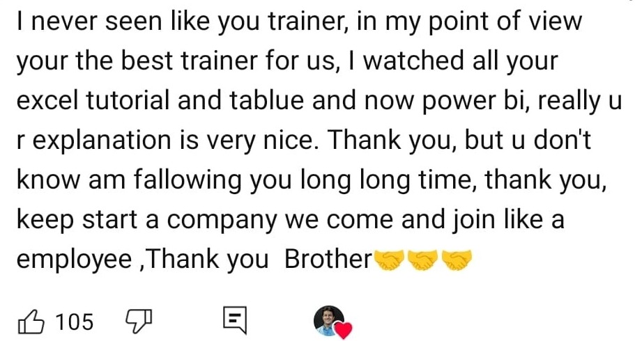 Pavan’s expertise goes beyond Power BI—he’s skilled in Tableau, Excel, Alteryx, AI, and Automation tools like ChatGPT and Microsoft Copilot. His ability to break down complex topics into simple, digestible lessons has made him one of India’s most renowned Power BI trainers. He is a trainer who knows trends, understands what industry demands and teaches only why you need to excel in this competitive market of evolving technology and industry.